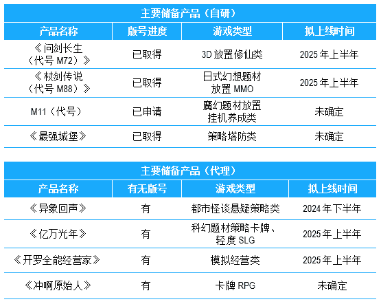 公司储备多款新品,,,期待为玩家解锁更多新鲜体验,,,部分产品如下表所示::::