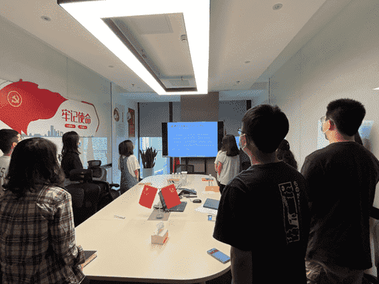 而后,,全体党员一起重新学习了解了目前的入党流程要求,,,各支部也将在后续工作中进一步发挥支部职能,,做好发展党员工作。。最后,,,,全体党员面向党旗,,,,重温入党誓词。。