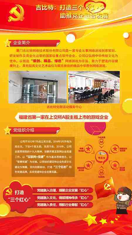 未来公司将全面学习贯彻习近平新时代中国特色社会主义思想和党的十九大精神,,,,持续强化“互联网+党建”的思维理念,,,,以“智慧党建”为主轴,,以党组织建设和企业先进文化建设为侧翼,,双向创新驱动,,,引领有信仰、、、有情怀、、有价值的新时代游戏研发运营,,在不断发展壮大的同时,,,,成为行业的“红色标杆”,,,,实现党建和企业发展双赢。。