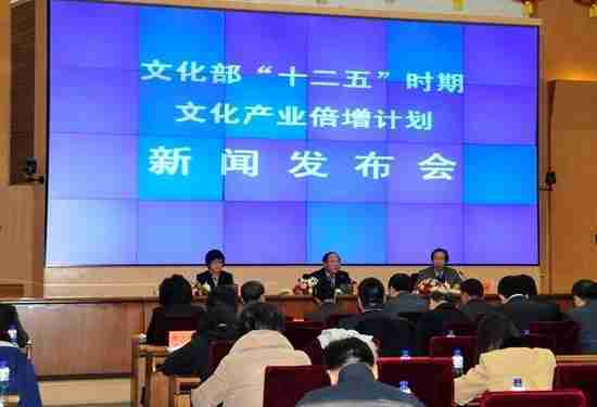 2月28日下午,,,文化部在京召开新闻发布会,,,正式向社会发布《文化部“十二五”时期文化产业倍增计划》,,,提出了 “十二五”期间文化部门管理的文化产业增加值年平均现价增长速度高于20%,,,2015年比2010年至少翻一番,,,实现倍增的奋斗目标。。。。
